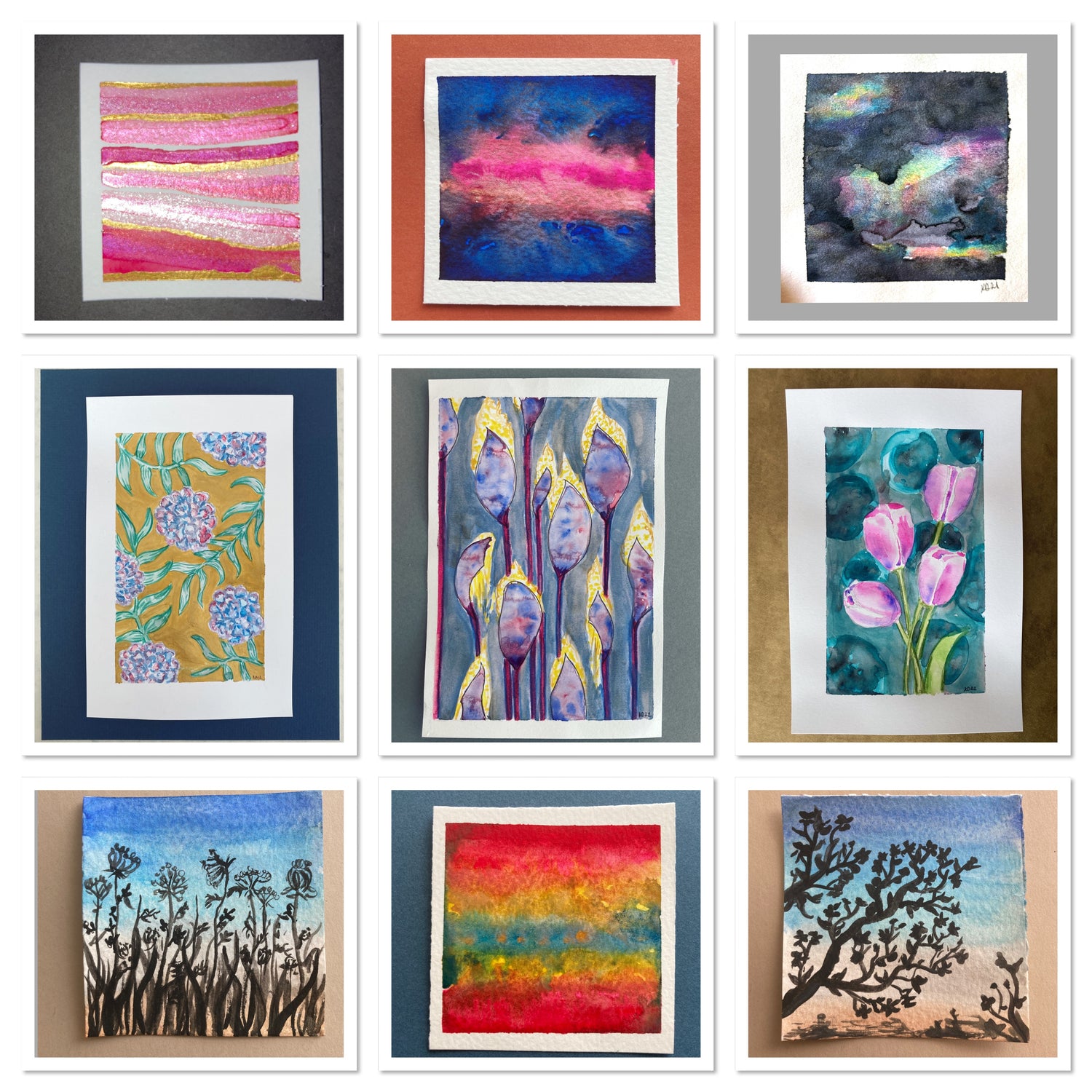 3x3 Abstract, Clouds, and Floral Watercolor.
